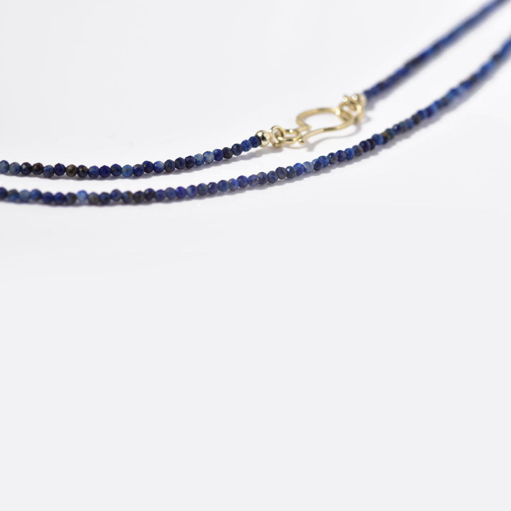 Smuk og fin ædelstenskæde med små facetterede lapis lazul perler.