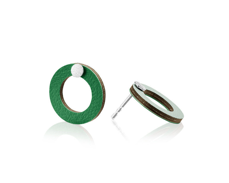 Øreringene er lavet af melamin kombineret med sølv.